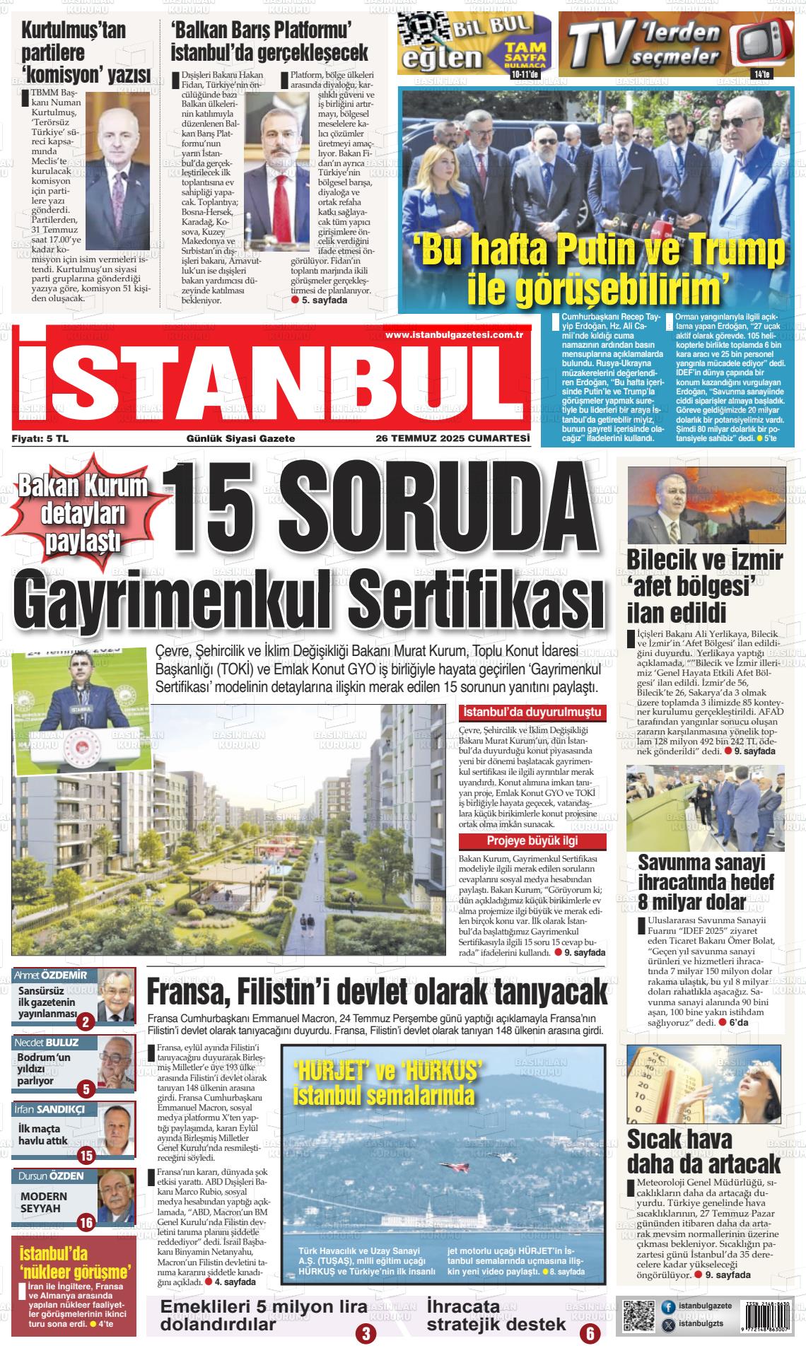 İstanbul Yerel Gazeteleri 28 Ekim 2025, Salı Günü Manşeti