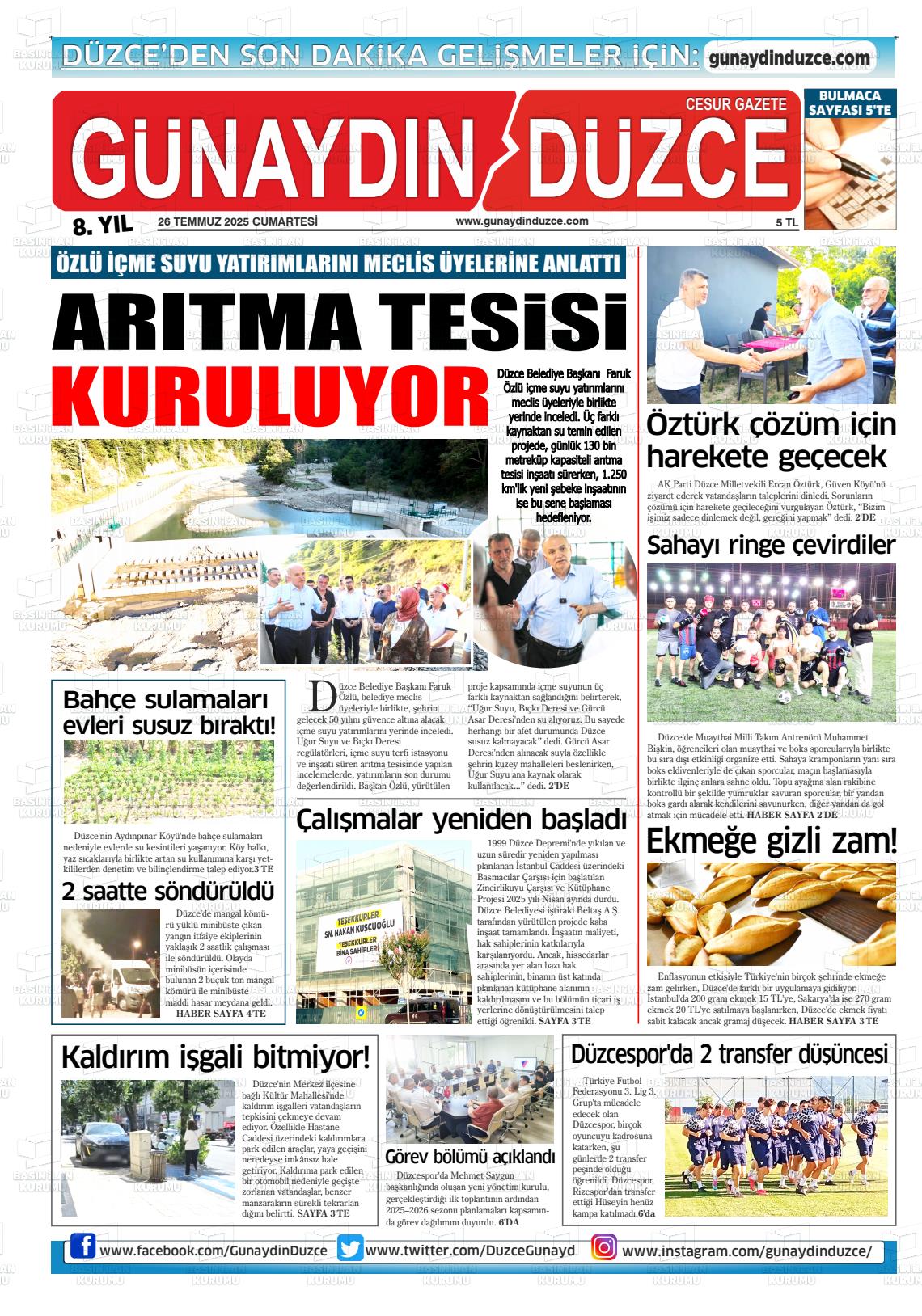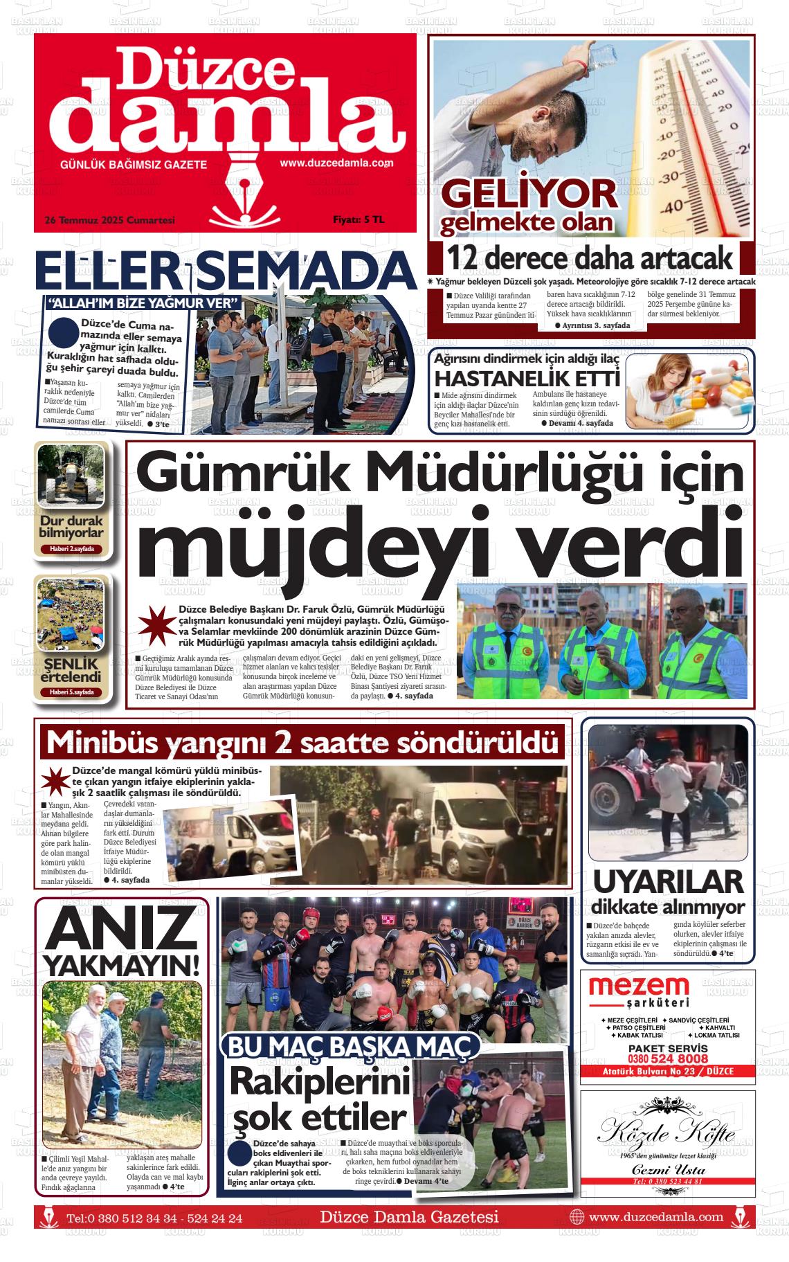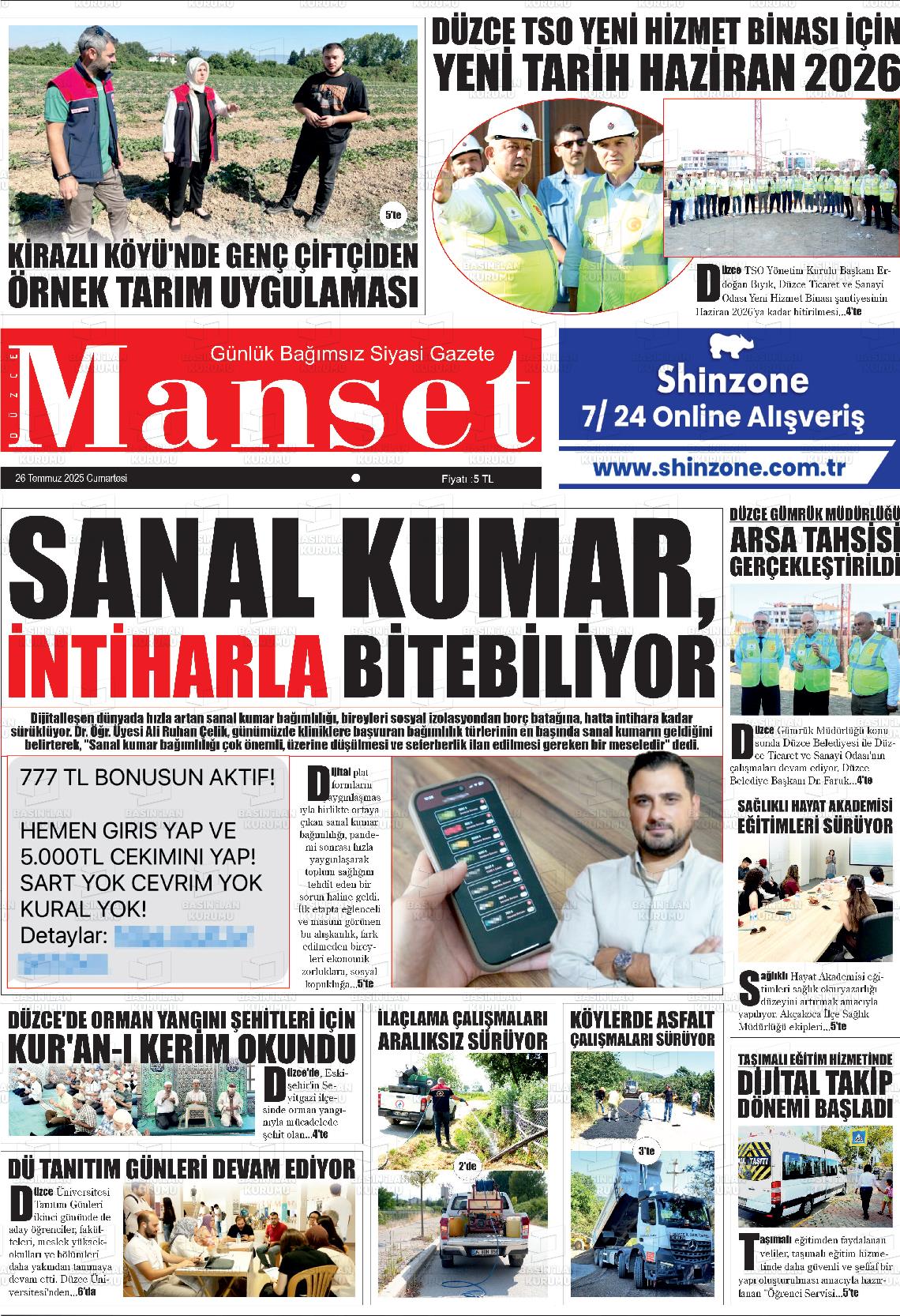 Düzce Yerel Gazeteleri 28 Ekim 2025, Salı Günü Manşeti
