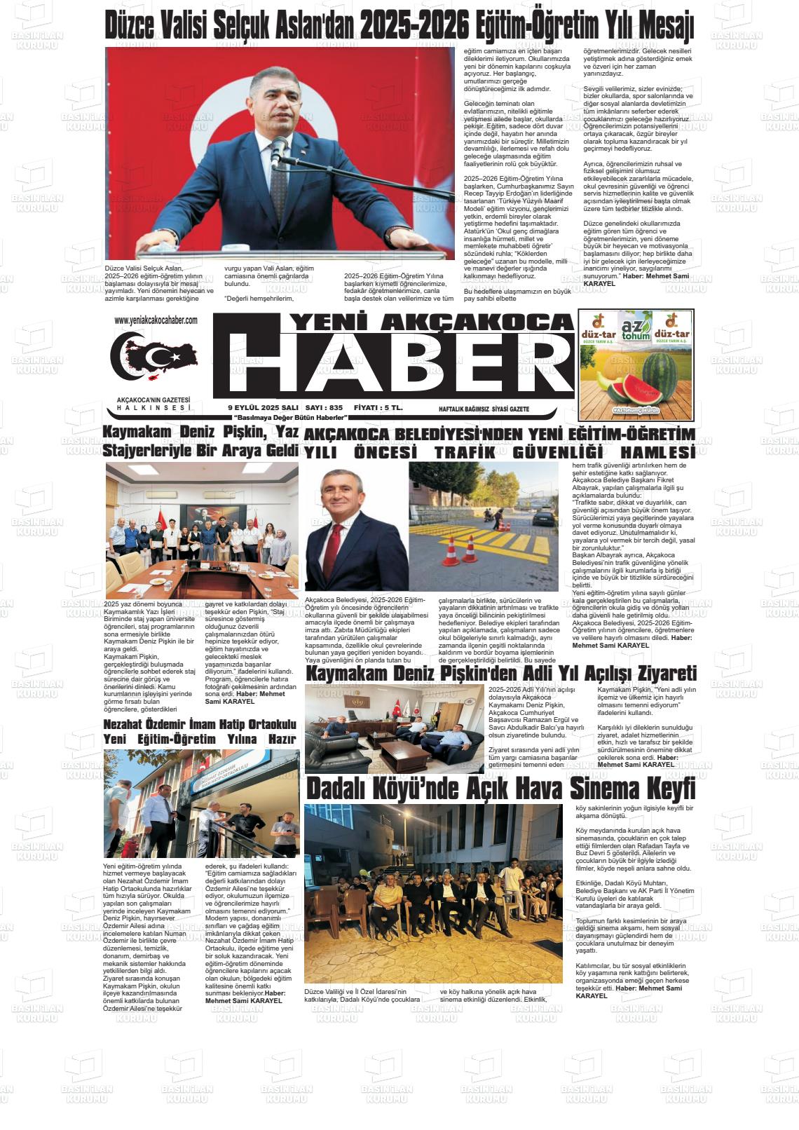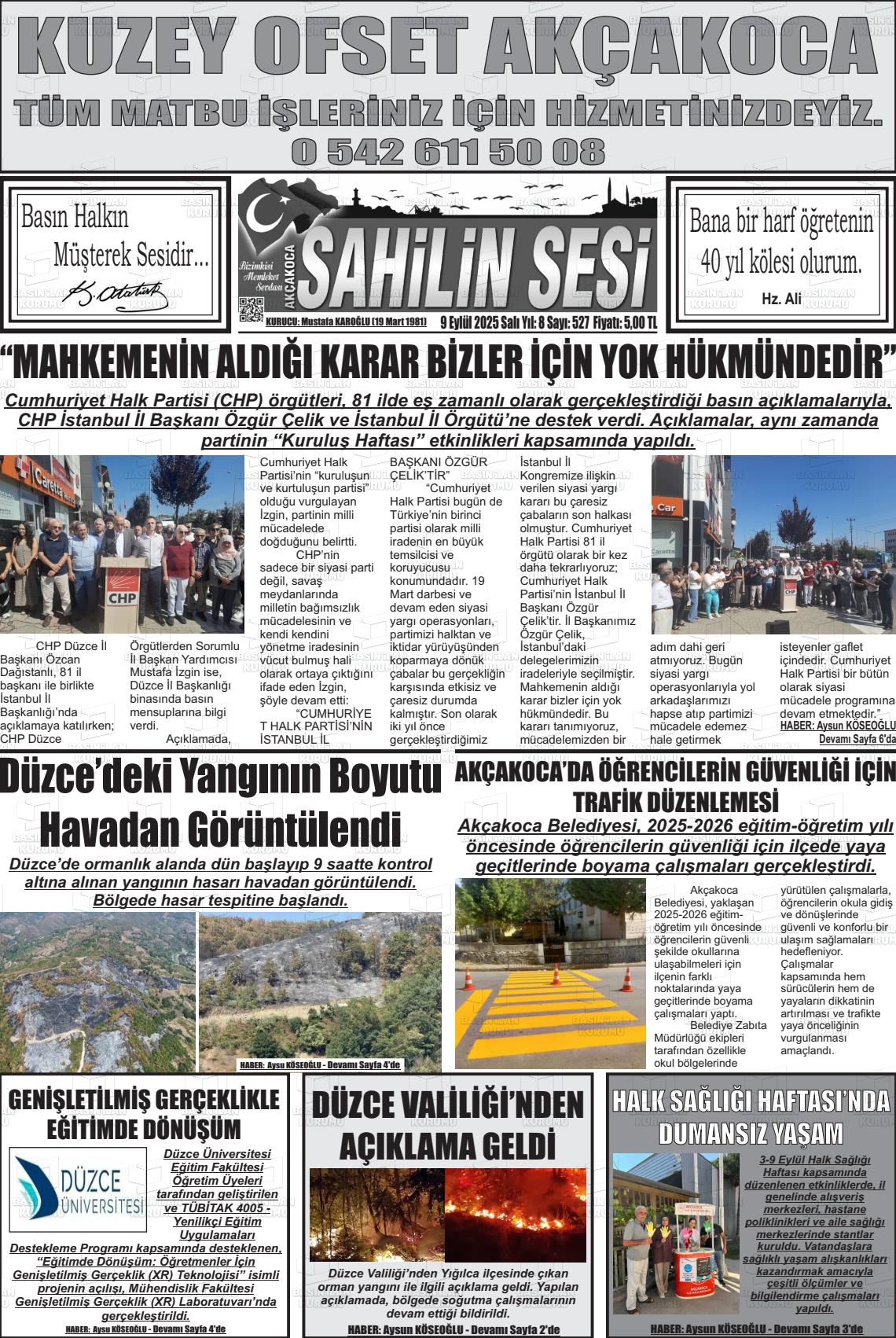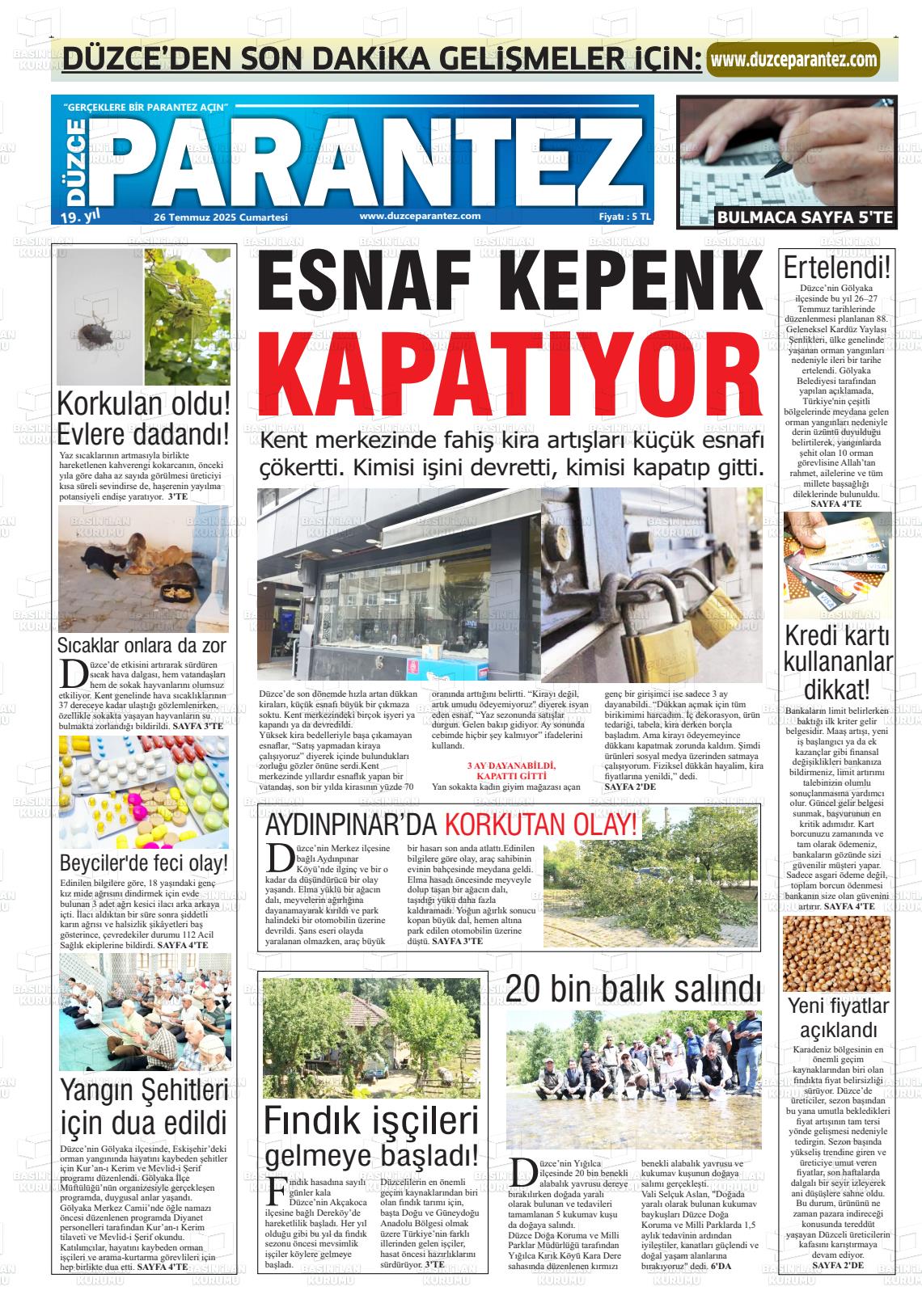 Düzce Yerel Gazeteleri 28 Ekim 2025, Salı Günü Manşeti
