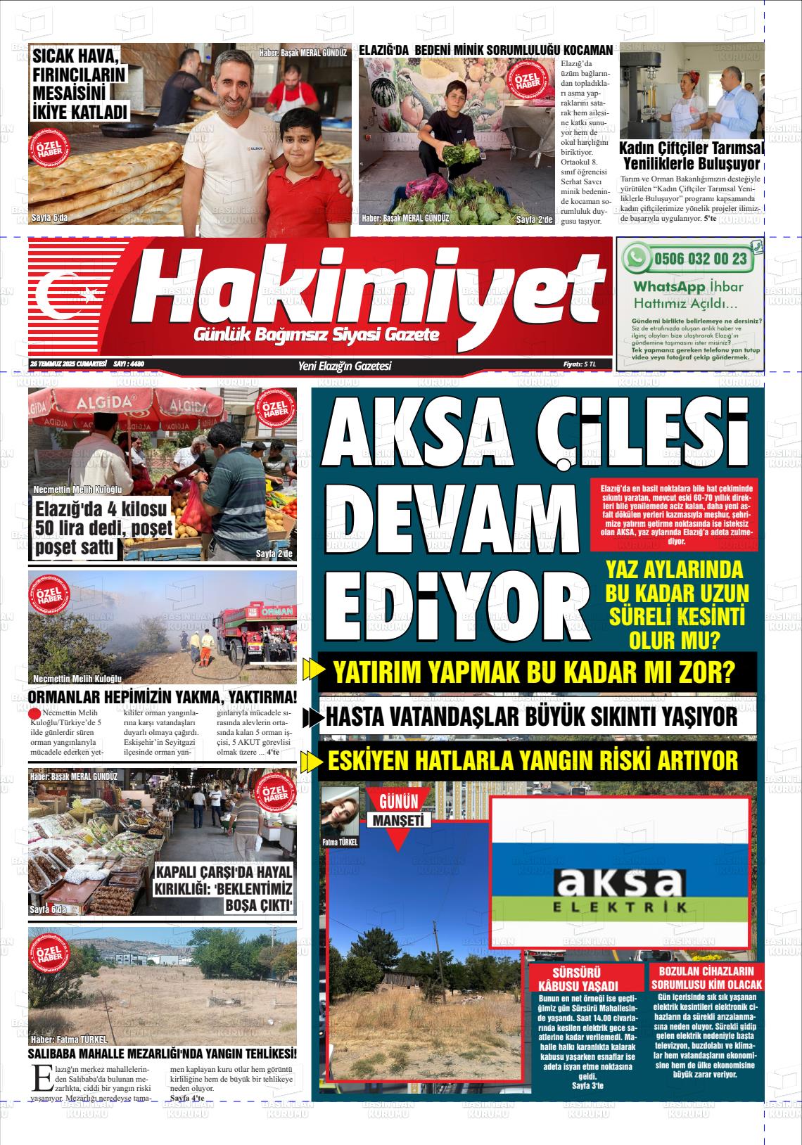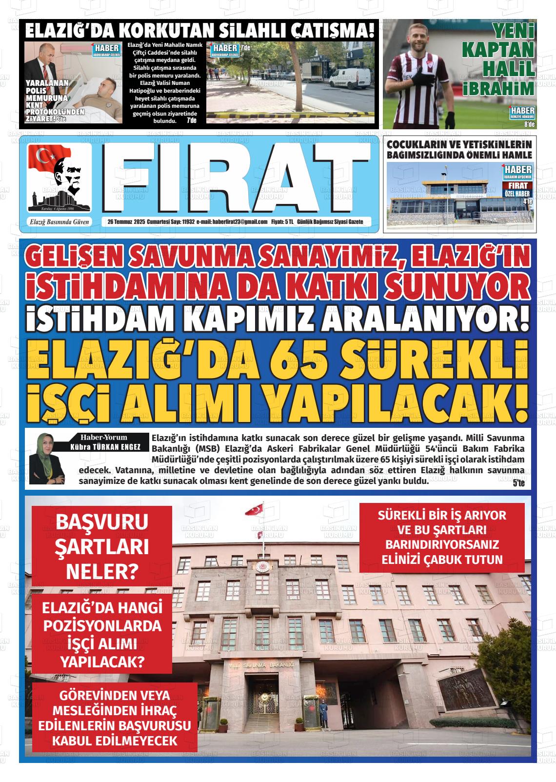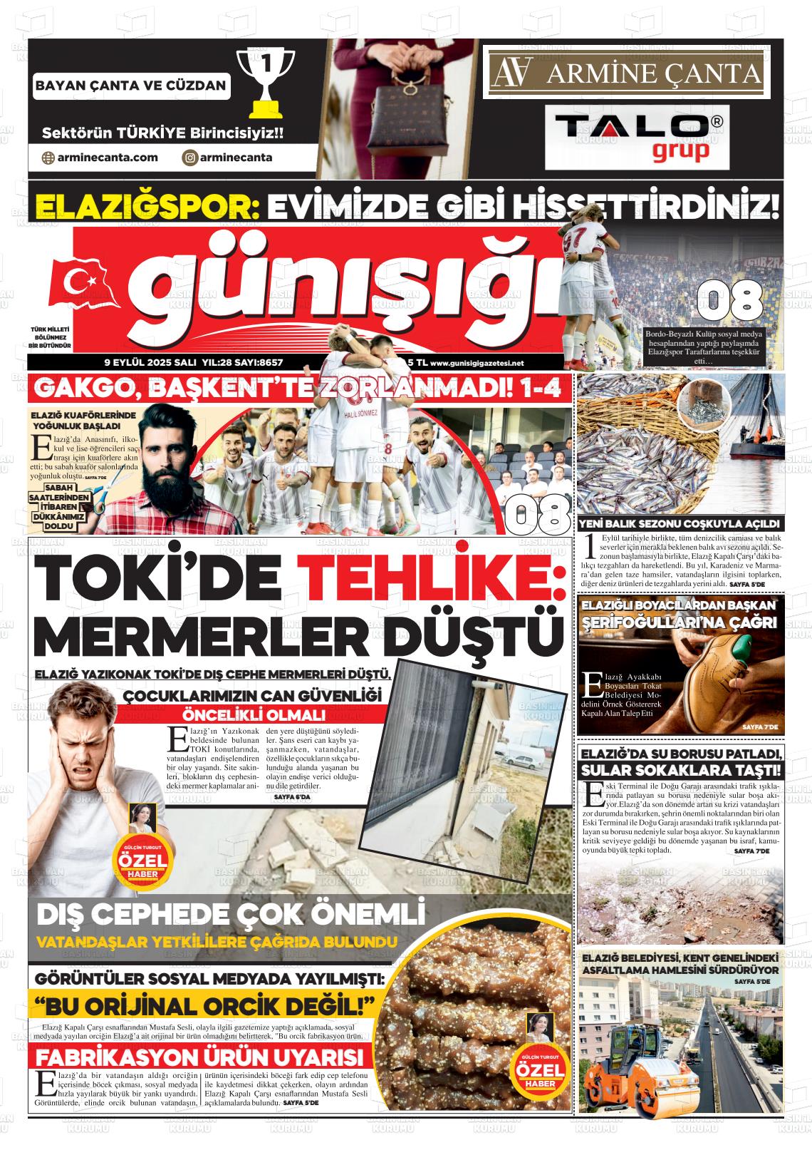 Elazığ Yerel Gazeteleri 28 Ekim 2025, Salı Günü Manşeti