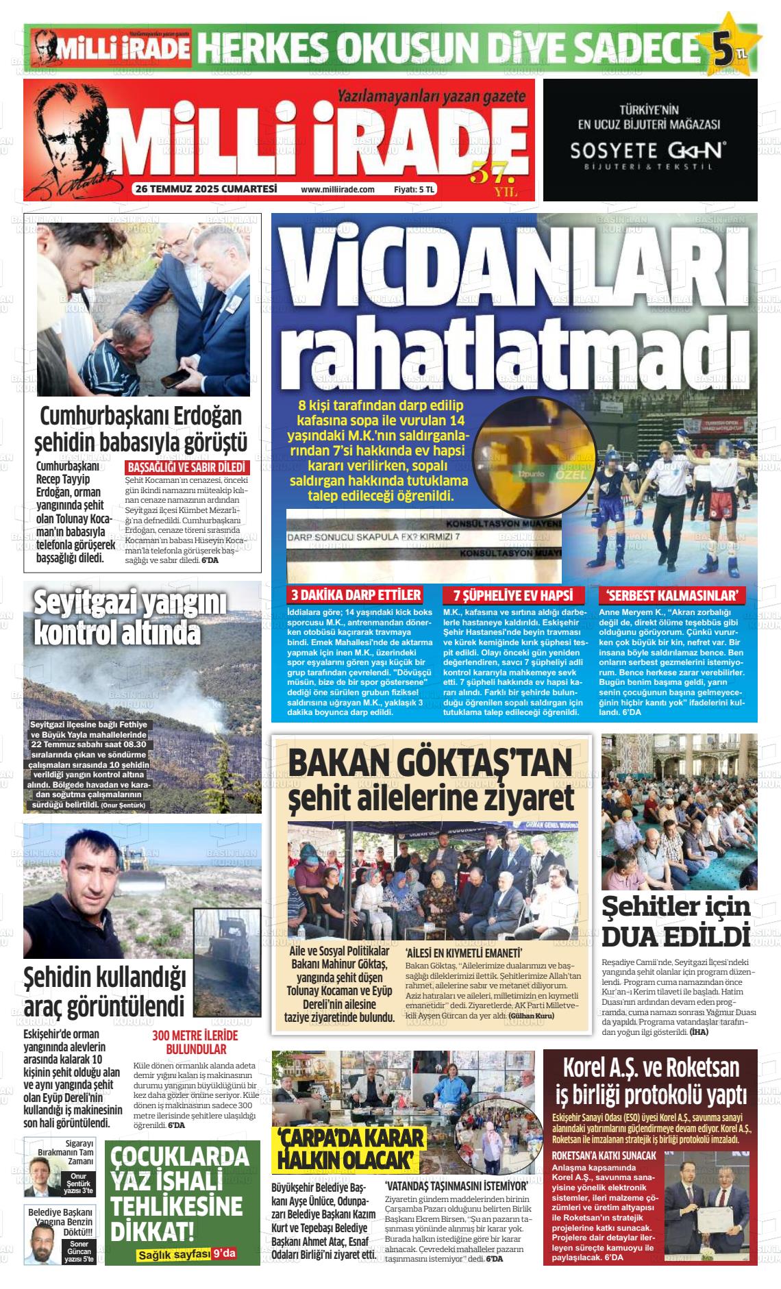 Eskİşehİr Yerel Gazeteleri 28 Ekim 2025, Salı Günü Manşeti