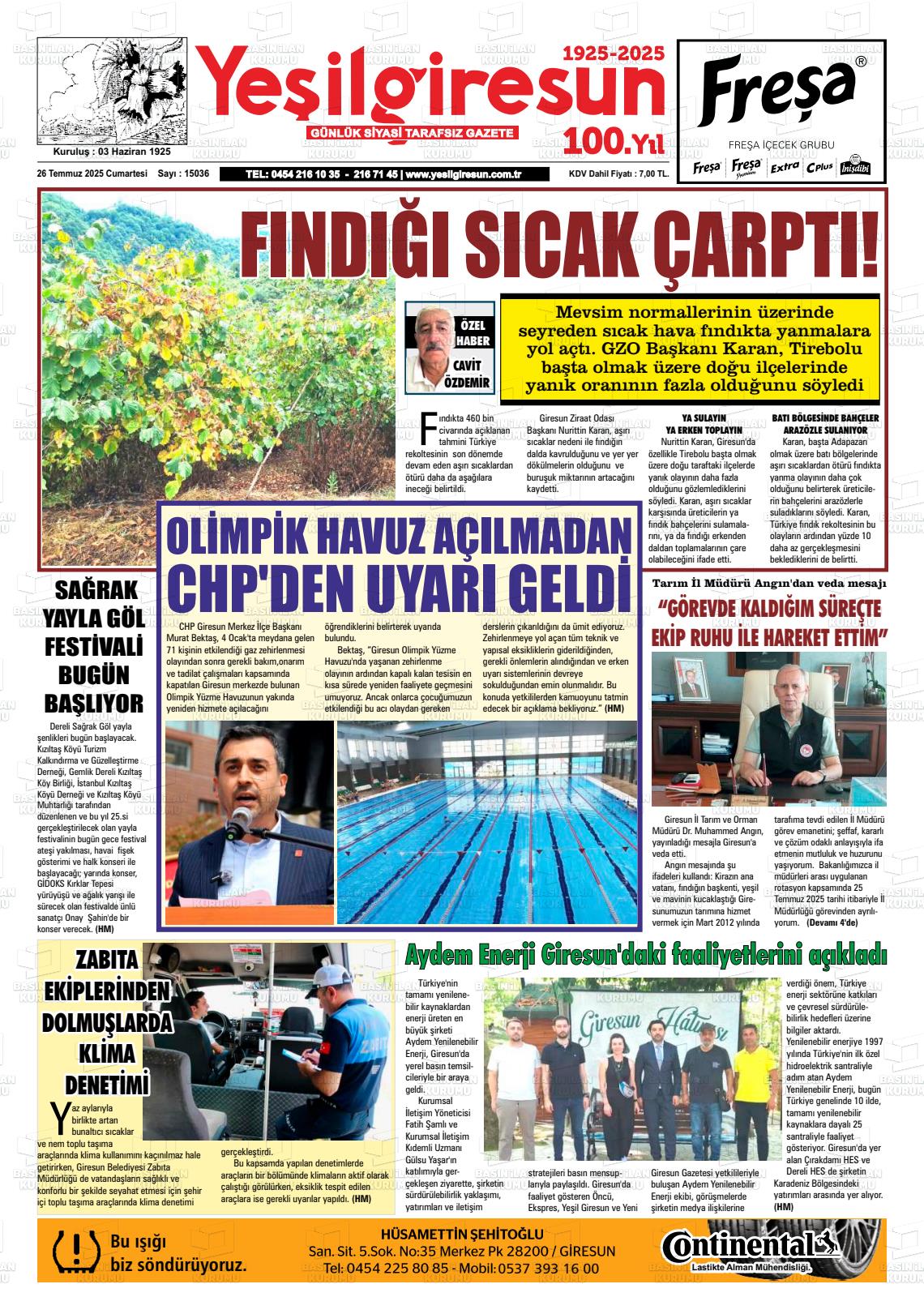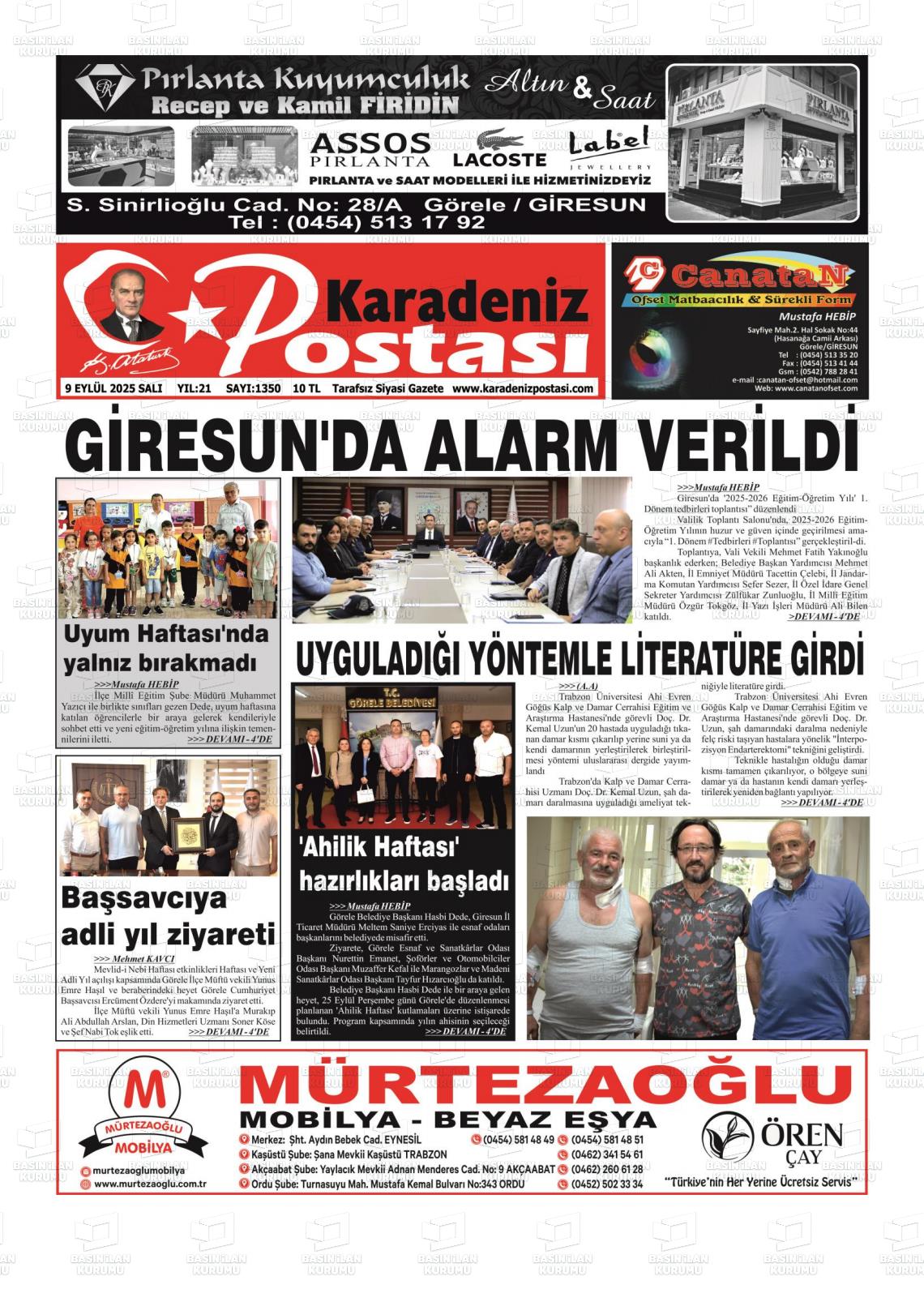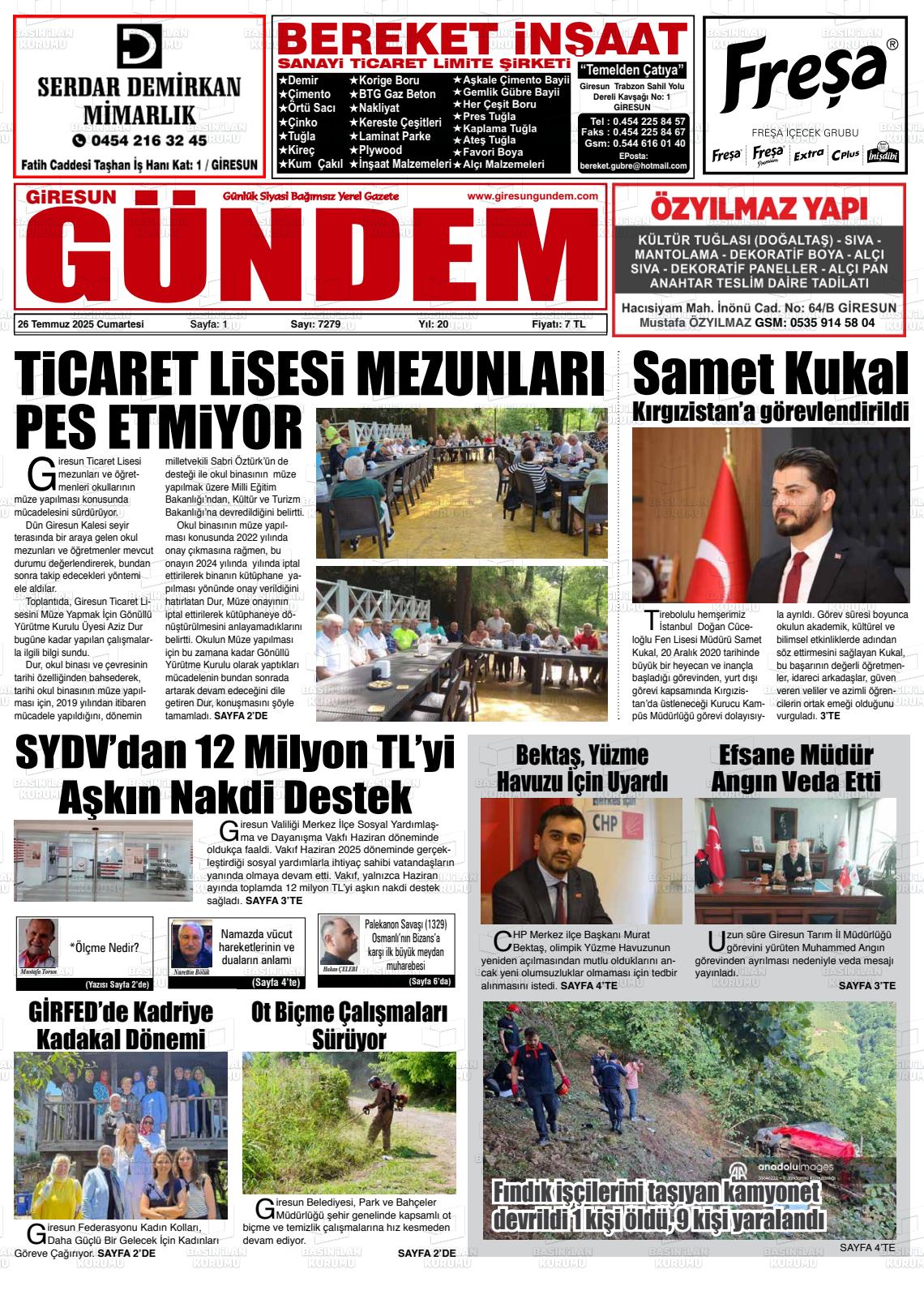 Gİresun Yerel Gazeteleri 28 Ekim 2025, Salı Günü Manşeti