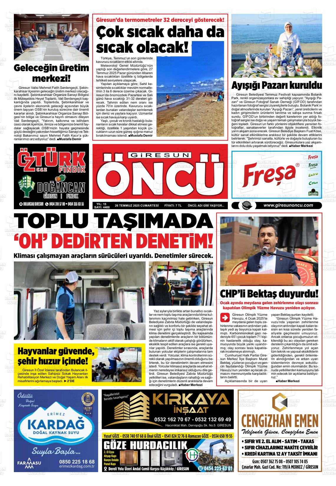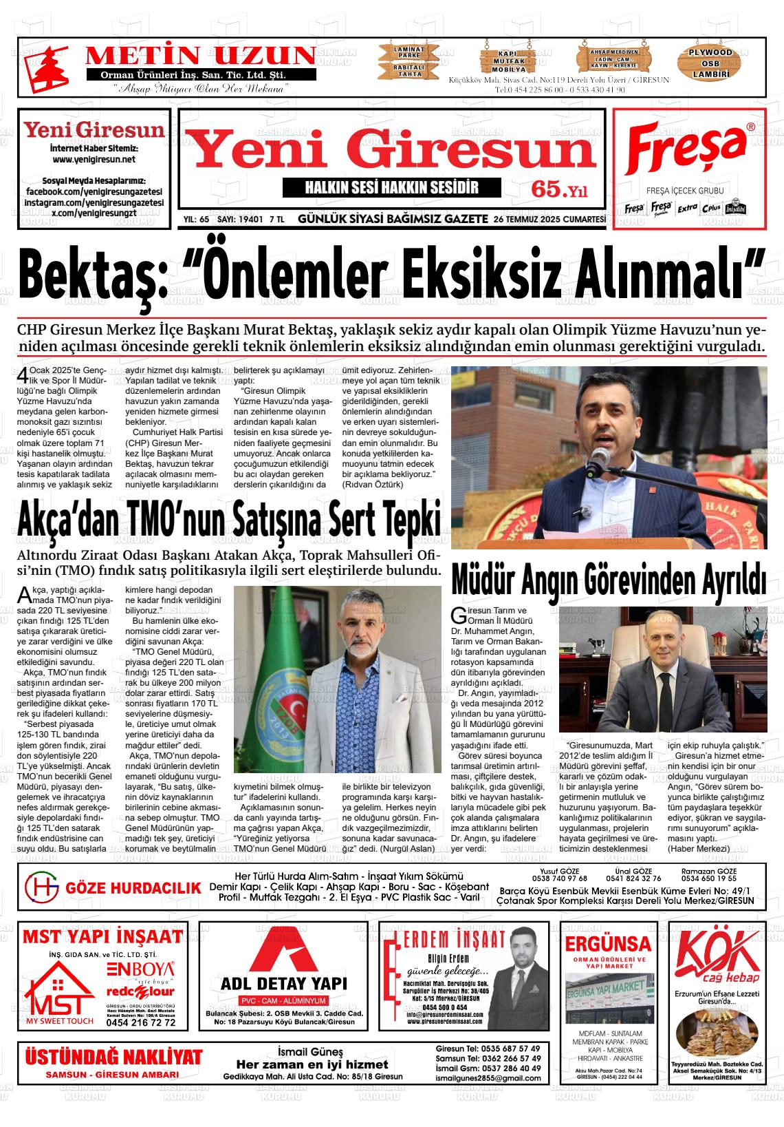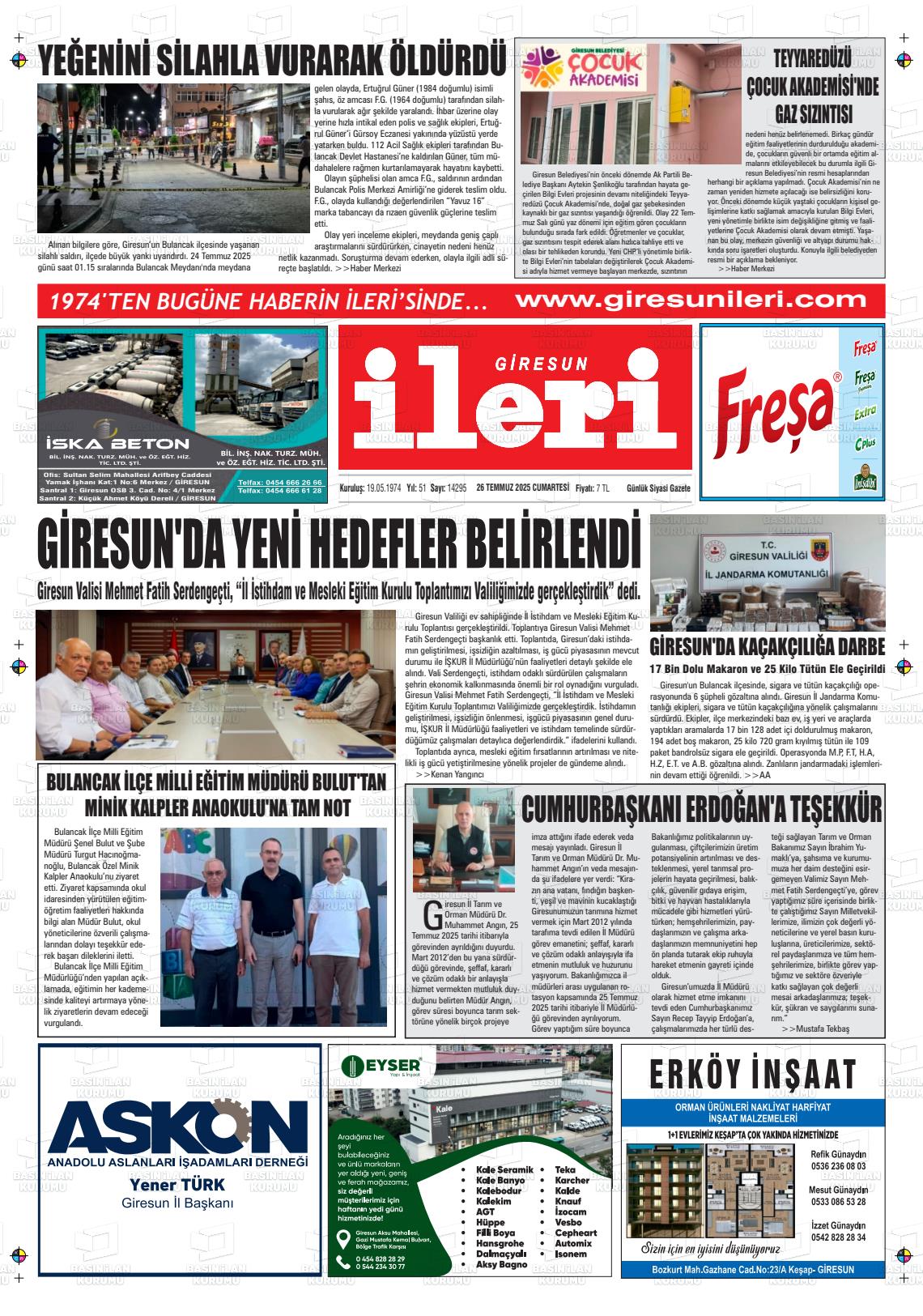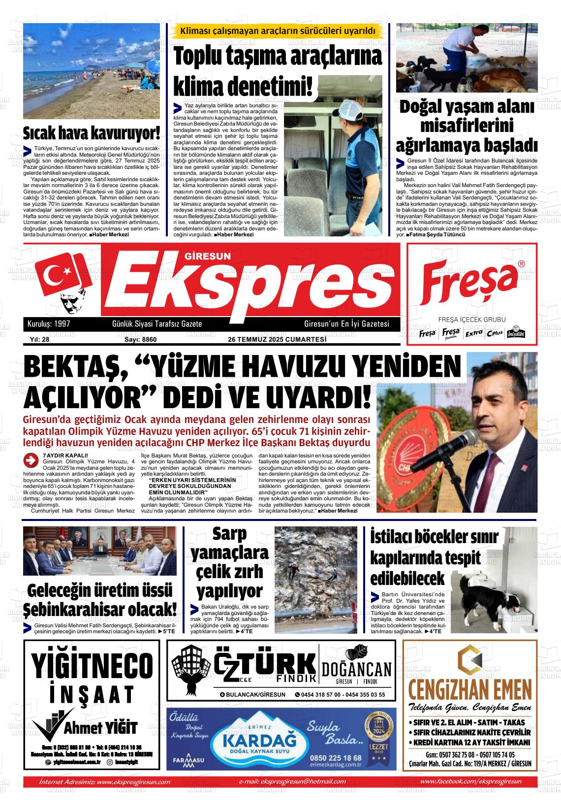 Gİresun Yerel Gazeteleri 28 Ekim 2025, Salı Günü Manşeti