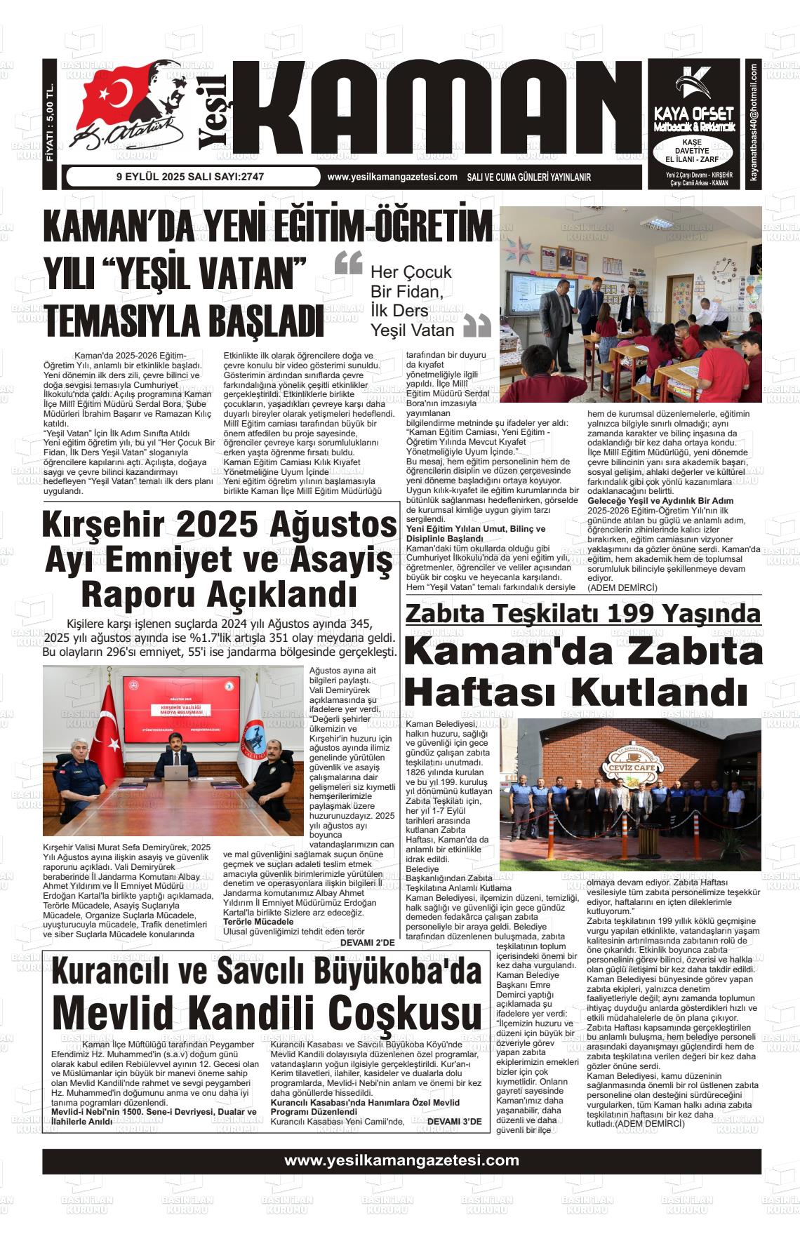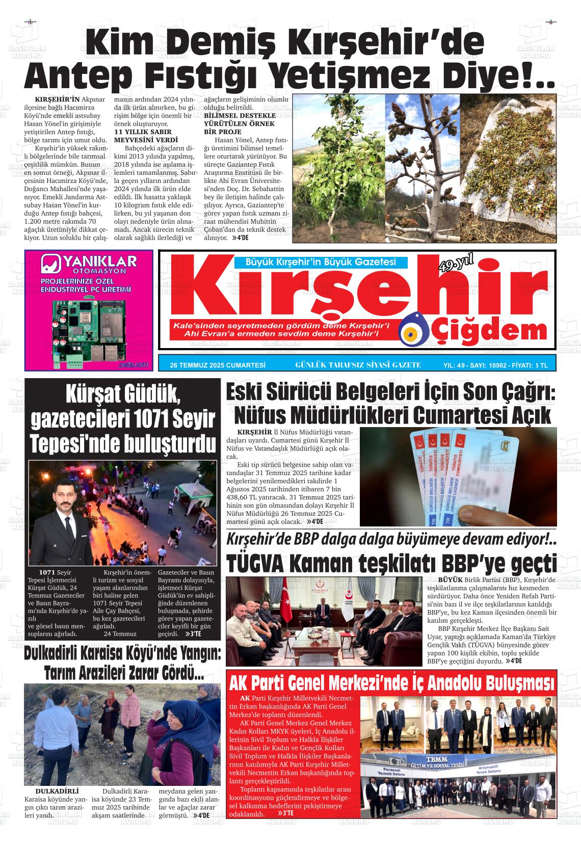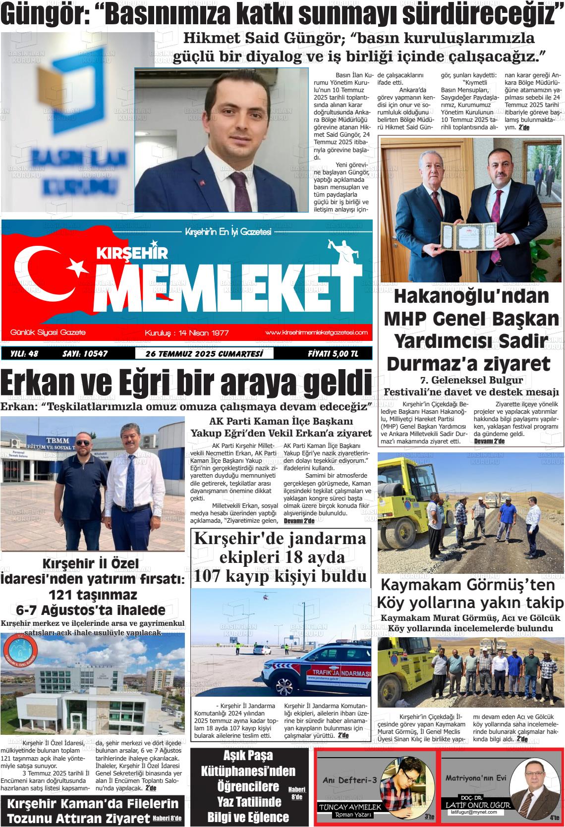 Kırşehİr Yerel Gazeteleri 28 Ekim 2025, Salı Günü Manşeti