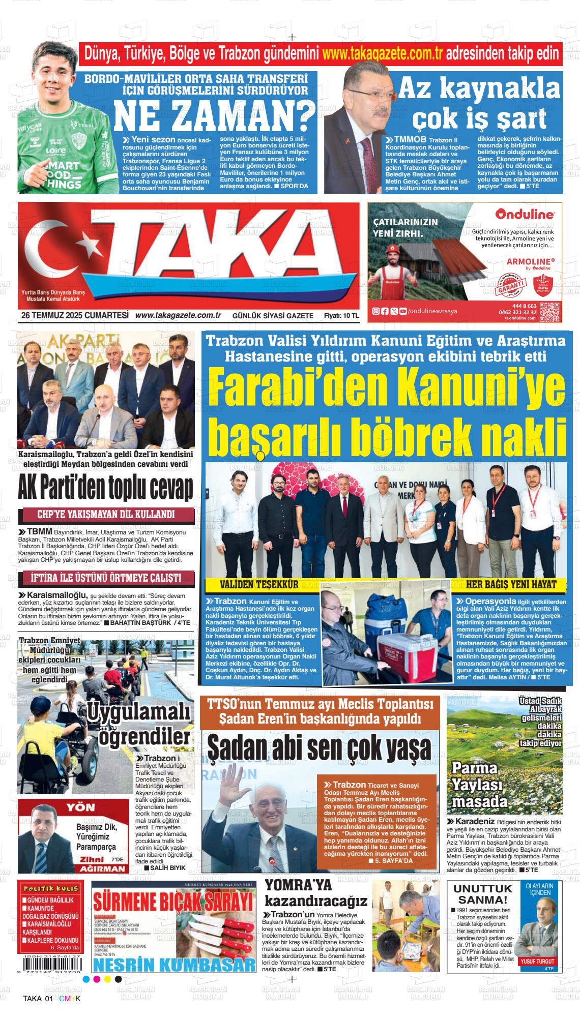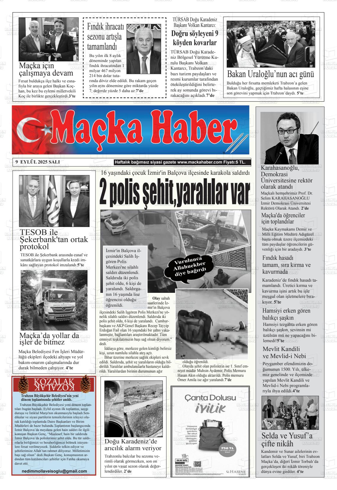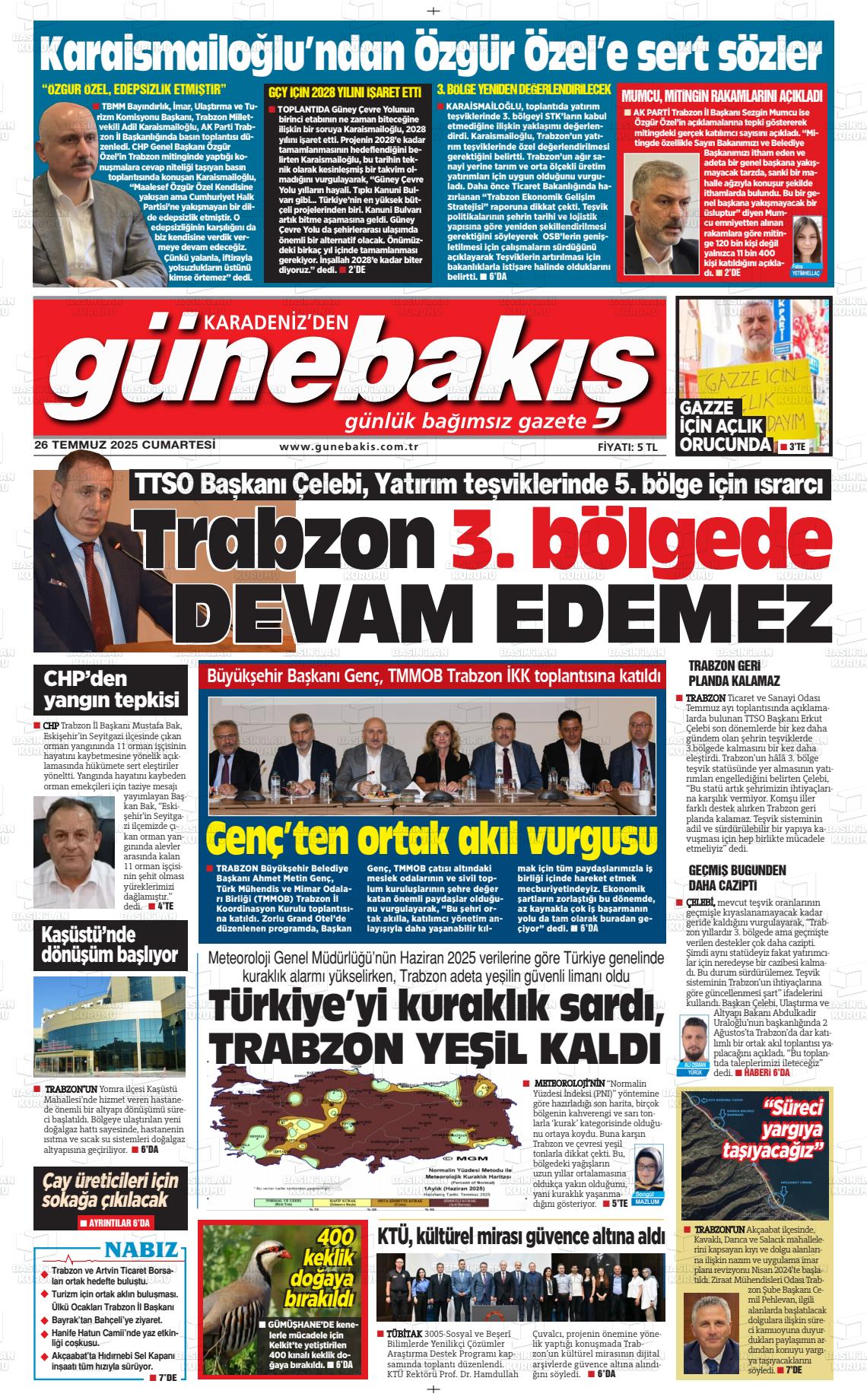 Trabzon Yerel Gazeteleri 28 Ekim 2025, Salı Günü Manşeti